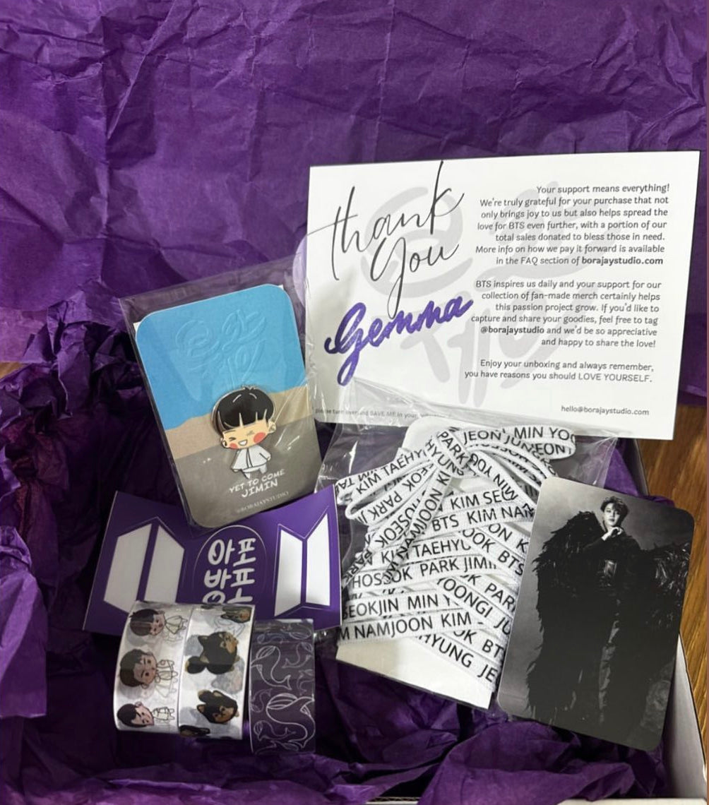 Everything arrived so fast! TYSM! I can't wait to use them all especially the shoelaces. Jinkook freebies are so cute, thank you!