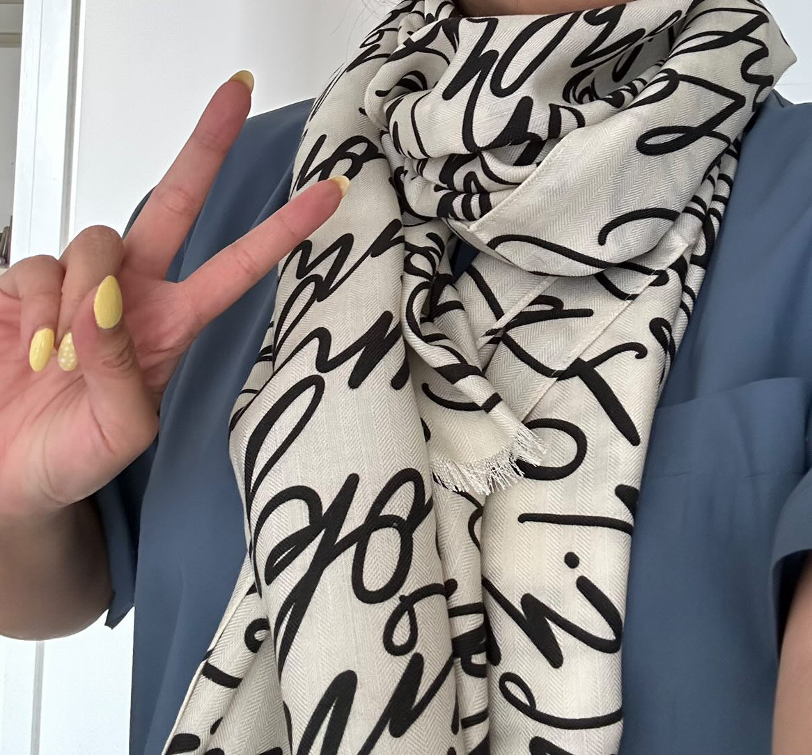I absolutely LOVE this fanchant scarf. Got the seconds one, however the quality is top notch!! The material is super soft, the print is clean, and it drapes so beautifully. Also love that the design is a subtle and elegant tribute to our seven. Worth every cent!! Thank you Jaime! 💜